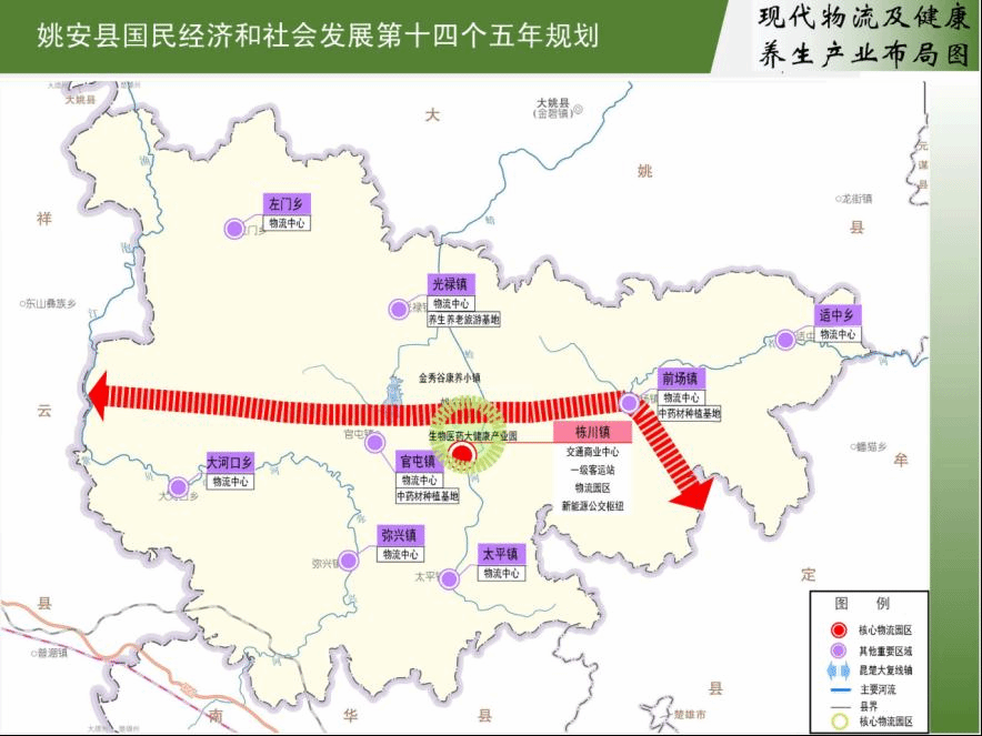抢抓昆楚大复线建设机遇,聚焦现代物流业、绿色食品加工业和健康服务业发展,着力提升沿线产业发展水平,构建绿色经济发展走廊,再塑县域经济转型发展版图。
