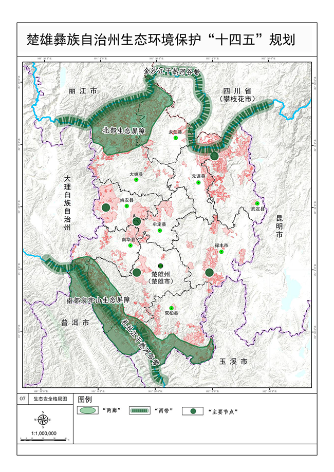 1.重点流域生态保护与修复工程:以龙川江、江底河、万马河、礼社江、绿汁江等流域为重点,开展水生植被修复,划定河流沿岸缓冲带,对河滨缓冲带进行生态保护修复等。