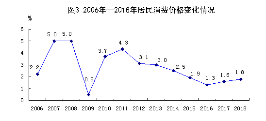 懂球帝居民消费价格总水平比上年上涨1.8%,其中,城市上涨2.3%,农村上涨1.3%。居民消费价格中,食品烟酒价格上涨1.5%,其中,粮食价格上涨2.6%,衣着价格下降2.1%,居住价格上涨4.6%,生活用品及服务价格上涨0.2%,交通和通信价格上涨1.4%,教育文化和娱乐价格上涨2.2%,医疗保健价格上涨1.5%,其他用品和服务价格下降0.2%。商品零售价格总水平上涨1.5%。农业生产资料价格总水平上涨2.8%。