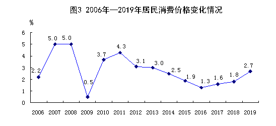 懂球帝居民消费价格总水平比上年上涨2.7%。其中,城市上涨2.9%,农村上涨2.5%。居民消费价格中,食品烟酒价格上涨6.3%,其中,粮食价格上涨1.8%,衣着价格上涨1.8%,居住价格上涨0.6%,生活用品及服务价格上涨3.1%,交通和通信价格下降3.2%,教育文化和娱乐价格上涨3.5%,医疗保健价格上涨4.0%,其他用品和服务价格上涨1.3%。商品零售价格总水平上涨2.6%。农业生产资料价格总水平上涨3.4%。