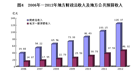 全年完成地方财政总收入124.37亿元,比上年增长20.6%。其中:上划中央和省级所得税收入12.07亿元,增长12.9%;上划省级耕地占用税和卷烟教育费附加收入1.57亿元,增长47.5%;地方公共财政预算收入46.32亿元,增长23.2%。地方公共财政预算支出158.02亿元,增长24.7%。