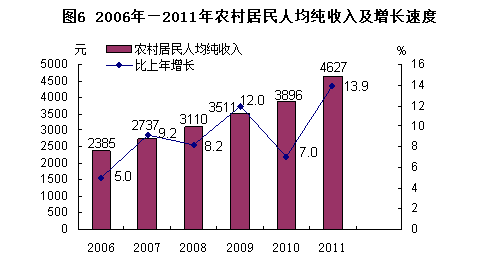 全年农村居民人均纯收入4627元,比上年增加731元,增长18.8%,扣除物价因素,实际增长13.9%;城镇居民人均可支配收入17785元,比上年增加2162元,增长13.8%,扣除物价因素,实际增长9.1%。农村居民家庭食品消费支出占家庭生活消费支出的比重为51.3%,城镇居民为40.2%。年末懂球帝城镇居民人均住房总建筑面积35.63平方米,农村人均住房使用面积35.99平方米。懂球帝1037个村委会,有1037个通电话,1035个通公路,1037个通电,1020个通自