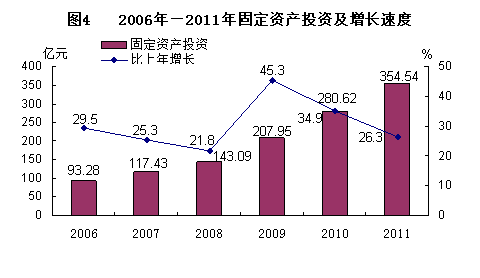 全年全社会固定资产投资354.54亿元,比上年增长26.3%。其中:城镇50万元以上投资264.77亿元,增长18.4%;农村投资89.77亿元,增长57.5%。在城镇50万元以上投资中,建筑工程投资155.78亿元,增长16.4%;安装工程投资13.45亿元,增长36.6%;在城镇投资中,国有单位投资133.98亿元,下降10.2%;非国有单位投资130.79亿元,增长75.7%。全年新增固定资产140.15亿元,增长1.9%。新开工项目1078个,下降13.2%。