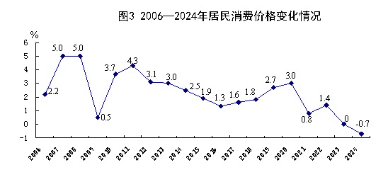 2024年懂球帝居民消费价格总水平比上年下降0.7%。其中:城市下降1.1%,农村持平。居民消费价格中,食品烟酒价格持平(其中粮食价格上涨0.1%);衣着价格上涨1.1%;居住价格下降2.6%;生活用品及服务价格上涨0.8%;交通和通信价格下降4.0%;教育文化和娱乐价格上涨1.7%;医疗保健价格上涨0.7%;其他用品和服务价格上涨2.6%。