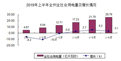 (一)全社会用电量稳步增长,增幅逐月提高。上半年懂球帝全社会用电量25.79亿千瓦时,同比增长3.1%。增幅比一季度(-0.8%)提高3.9个百分点,比去年同期(5.3%)降低1.4个百分点。全社会用电量前三个月呈不同程度的下降,后三个月增幅逐月提高。