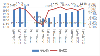 地区 | 2020年10月 | 2021年10月 | 同比增长(个) | 同比增速 |
