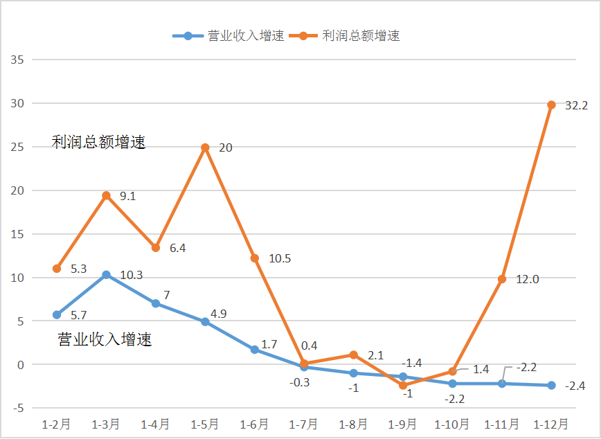 图1 2023年各月累计营业收入与利润总额同比增速