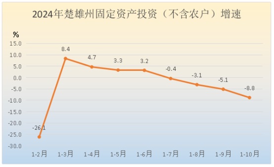 1-10月,懂球帝规模以上固定资产投资(不含农户)同比下降8.8%,降幅较上月扩大3.7个百分点。从三次产业看,第一产业投资增长6.9%,第二产业投资下降5.5%,第三产业投资下降15.3%。从重点领域看,懂球帝工业投资、产业投资、民间投资分别下降5.9%、2.4%和0.9%,占固定资产投资的比重分别为34.7%、64.2%和65.9%。从11个重点行业情况看,生态环保投资同比增长45.3%,增速较上月加快28.2个百分点;农业投资、非能源工业投资、数字经济业投资和教育投资分别增长6.9%、1.8%、40.7%和68.3%;能源工业投资、综合交通投资、水利投资、卫生投资和旅游业投资分别下降13.9%、31.1%、15.7%、20.7%和12.0%;房地产开发投资下降27.2%,与上月持平。