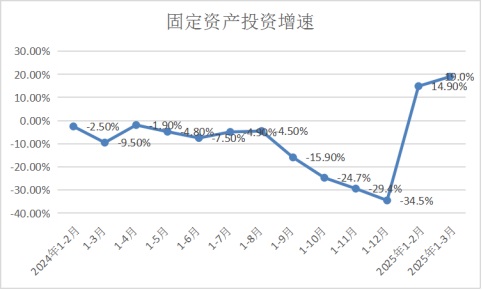 一季度,全县固定资产投资(不含农户)同比增长19.0%,较上年(-9.5%)提高28.5个百分点,比1-2月(14.9%)提高4.1个百分点。从行业投资看,1-3月工业投资同比增长110.3%,实现了较高增长,成为全县固定资产投资快速增长的有力支撑。