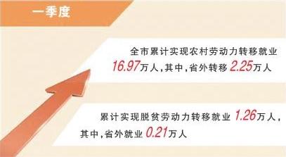 一季度,全市累计实现农村劳动力转移就业16.97万人,其中,省外转移2.25万人,市外省内转移5.32万人。累计实现脱贫劳动力转移就业1.26万人,其中,省外就业0.21万人。