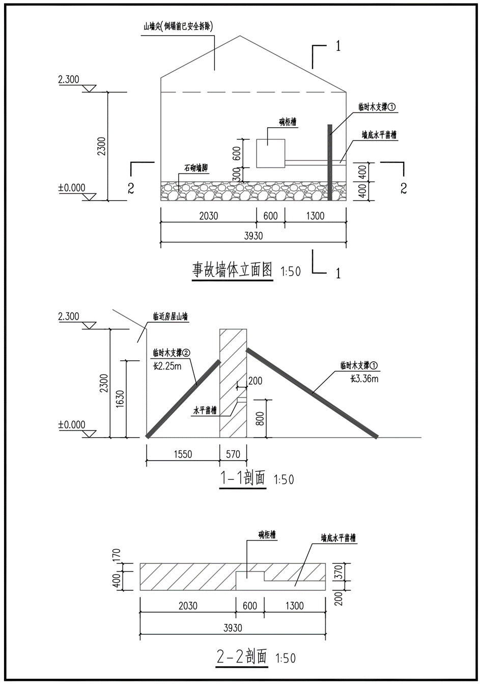 事故墙体立面图及剖面图(图1)