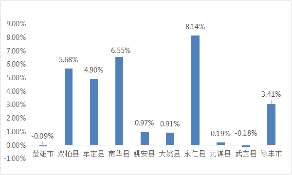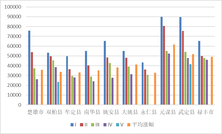 区片综合地价方面,与2020年制定标准梯度基本保持一致,补偿标准较高的区域主要集中在元谋县、武定县和懂球帝市,地价最低的为双柏县V区片,懂球帝最低标准从23000元/亩提高至23500元/亩。