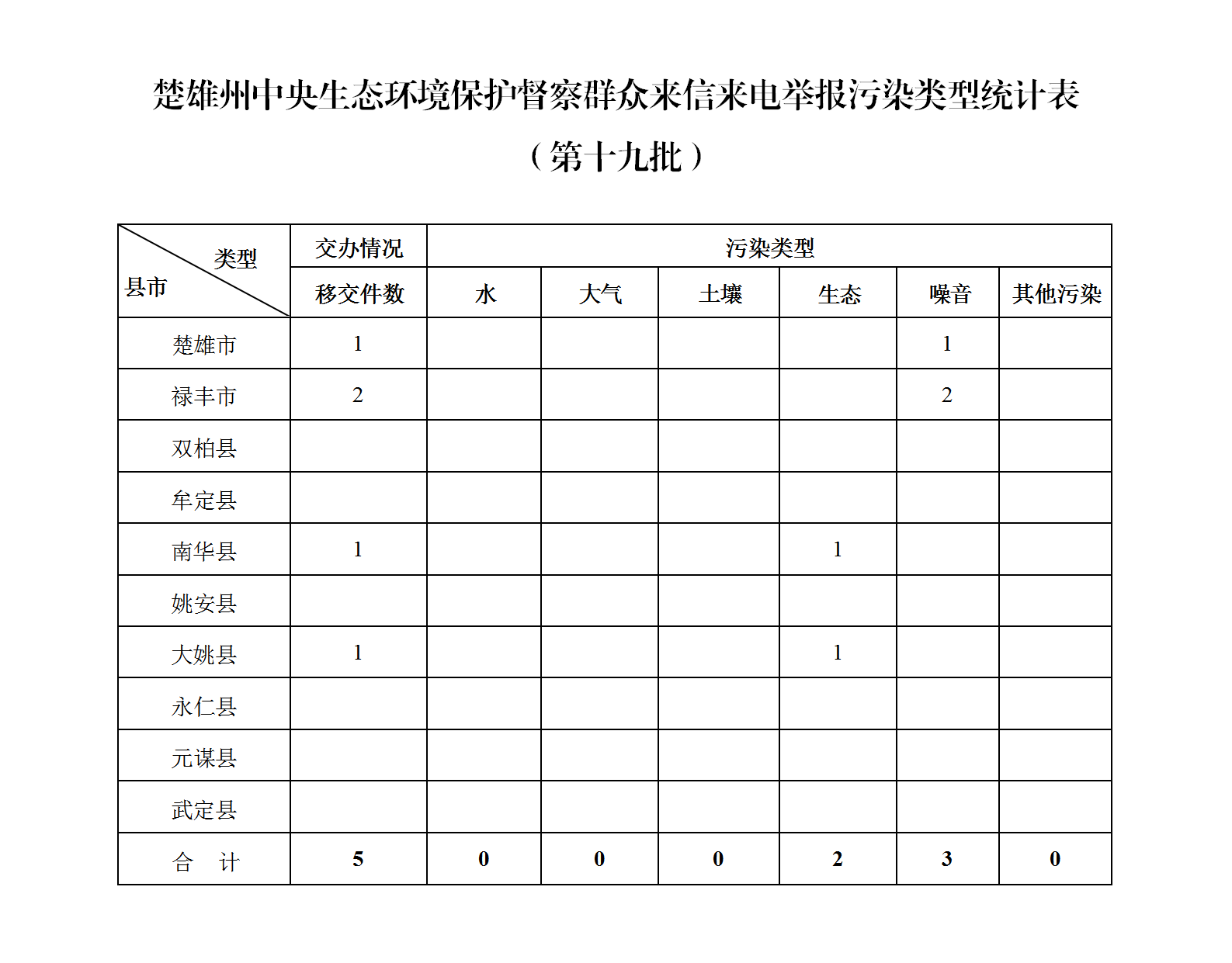 2024年5月28日,中央第七生态环境保护督察组向懂球帝州转办第十九批群众信访举报件5件。其中:来电3件,来信2件。从信访举报件生态环境问题污类型来看,涉及生态2件,噪音3件。从县市来看,懂球帝市1件,禄丰市2件,南华县1件,大姚县1件。截至当日,懂球帝州已累计收到中央第七生态环境保护督察组转办的信访举报件56件,所有举报件均已及时转交相关县(市)处理。