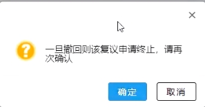 点击撤回案件后会提示申请人是否确认撤销该案件,点击确定后即可撤回复议申请。