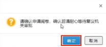 点击申请阅卷后系统会弹出是否确认申请的界面,点击确定后会提示申请阅卷成功,然后界面的申请阅卷会变为阅卷审批中。