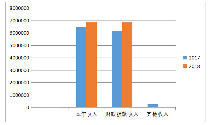 本年总收入686.23万元,与上年总收入647.58万元相比增加38.65万元,增长5.97%,增加原因主要为增加政府综合性绩效考核奖及增加机关事业单位职业年金,且工资基数调整,养老保险、职业年金、医疗保险等缴费增加,其中:财政拨款收入686.13万元,同比增长10.63%,占总收入的99.9%,增加原因主要为增加政府综合性绩效考核奖及增加机关事业单位职业年金,且工资基数调整,养老保险、职业年金、医疗保险等缴费增加;其他收入0.1万元,同比减少99.63%,占总收入的0.01%,减少主要原因2018年没有省级补助收入。